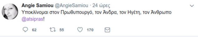 Aποθεωτική ανάρτηση από Άντζυ Σαμίου για Τσίπρα: «Υποκλίνομαι στον πρωθυπουργό, τον άνδρα, τον ηγέτη…»
