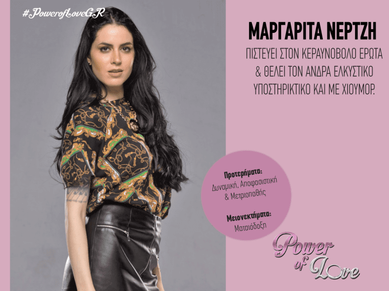 Η Μαργαρίτα Νέρτζη ή σκέτο Νέρτζη, είναι η Θεσσαλονικιά DJ που γνωρίσαμε από τη συμμετοχής της στον δεύτερο κύκλο του «Power of Love» καθώς αυτή τη στιγμή βρίσκεται μέσα στο σπίτι του ριάλιτι του ΣΚΑΪ.