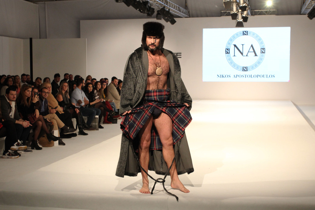 Tο παραδοσιακό σκωτσέζικο κιλτ συνδυάστηκε με γούνινο καπέλο και κολιέ στο λαιμό και ο Πάνος Αργιανίδης έγινε το Next top model.