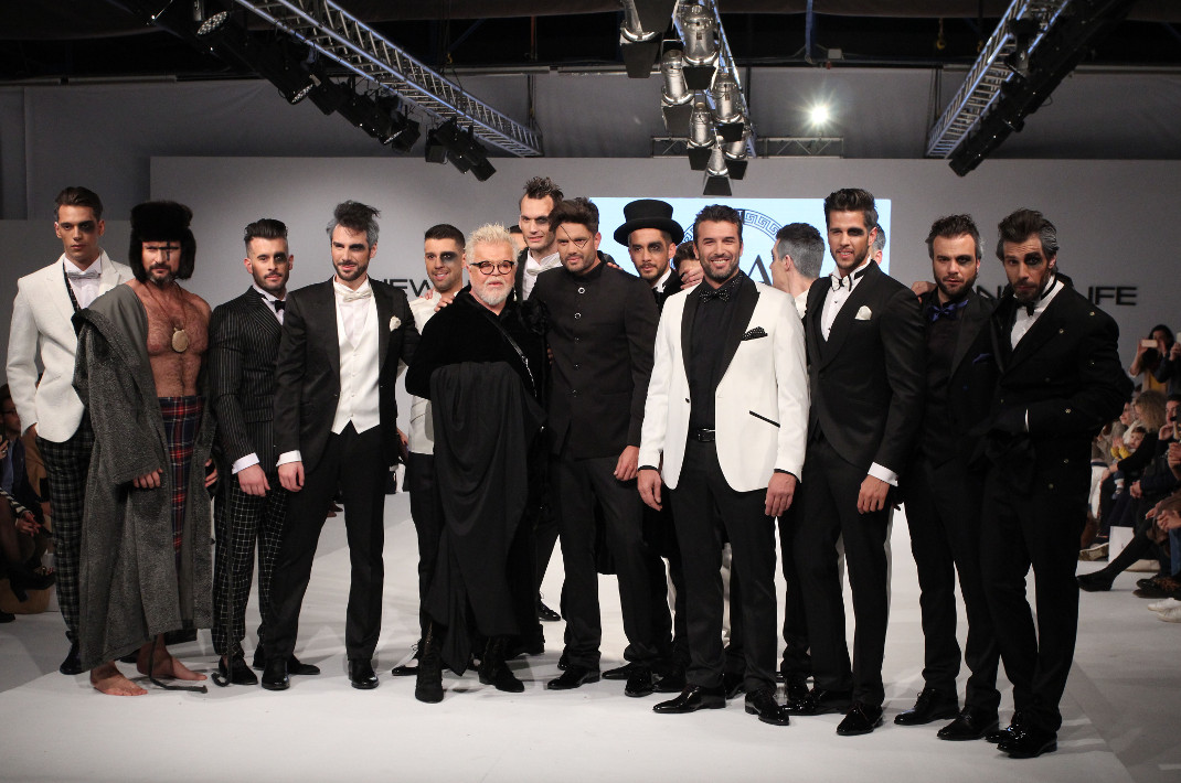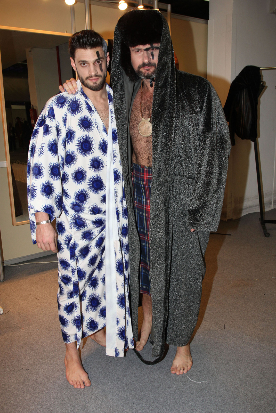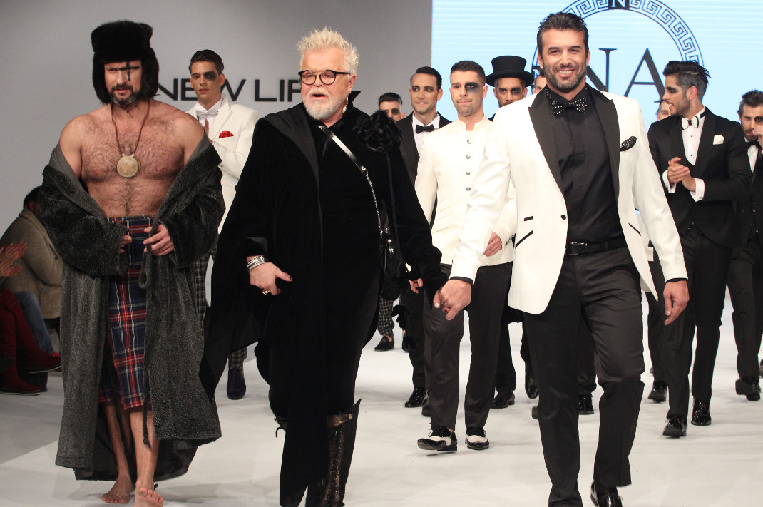 Ο Πάνος Αργιανίδης φόρεσε μια ρόμπα και καρό σκωτσέζικη φούστα και περπάτησε στην πασαρέλα.