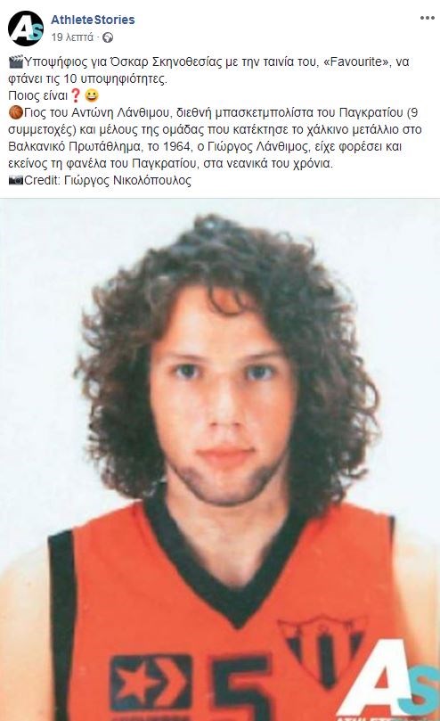 Είναι ο σκηνοθέτης, Γιώργος Λάνθιμος, ο οποίος θα διεκδικήσει φέτος 10 Όσκαρ με την ταινία «The Favourite» και στα νεανικά του χρόνια φόρεσε τη φανέλα του Παγκρατίου συνεχίζοντας την οικογενειακή παράδοση.