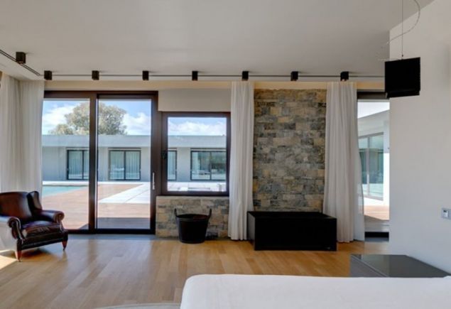 Η πτέρυγα της οικογένειας αποτελείται από ένα κυρίως υπνοδωμάτιο-σουίτα και δύο επιπλέον υπνοδωμάτια, το καθένα με ιδιωτικό μπάνιο, ενώ η πτέρυγα των φιλοξενουμένων αποτελείται από μια VIP σουίτα και τρία επιπλέον υπνοδωμάτια, όλα με ιδιωτικό μπάνιο, καθώς και ένα άνετο δωμάτιο αναψυχής. Κάθε μεγάλο δωμάτιο στο σπίτι ανοίγει σε μια μοντέρνα πισίνα και στο αίθριο που είναι σχεδιασμένο σε φυσικούς γήινους καφέ και γκρι τόνους.