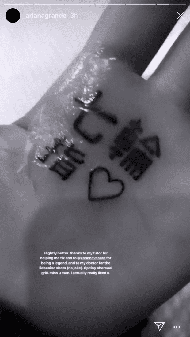 Εμφανώς αναστατωμένη, η Αριάνα ισχυρίστηκε ότι δεν ολοκλήρωσε το τατουάζ επειδή πονούσε ενώ αργότερα έγραψε «Σας παρακαλώ αφήστε με μόνη με την… ψησταριά μου» .