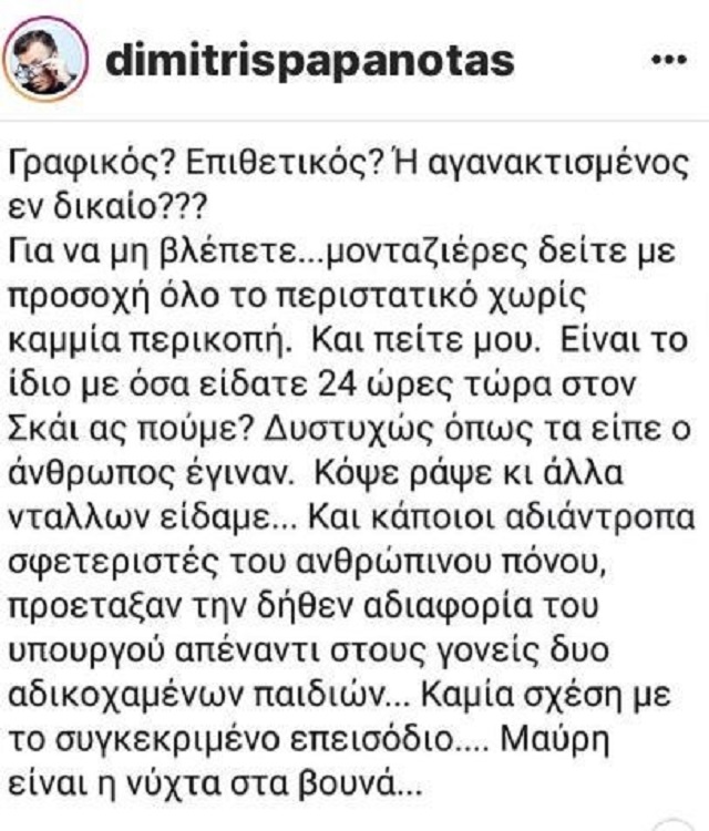 Το μέρος του Παύλου Πολάκη πήρε ο γνωστός παρουσιαστής, Δημήτρης Παπανώτας, σχετικά με την χθεσινή λεκτική επίθεση σε δημοσιογράφους και συνδικαλιστές.