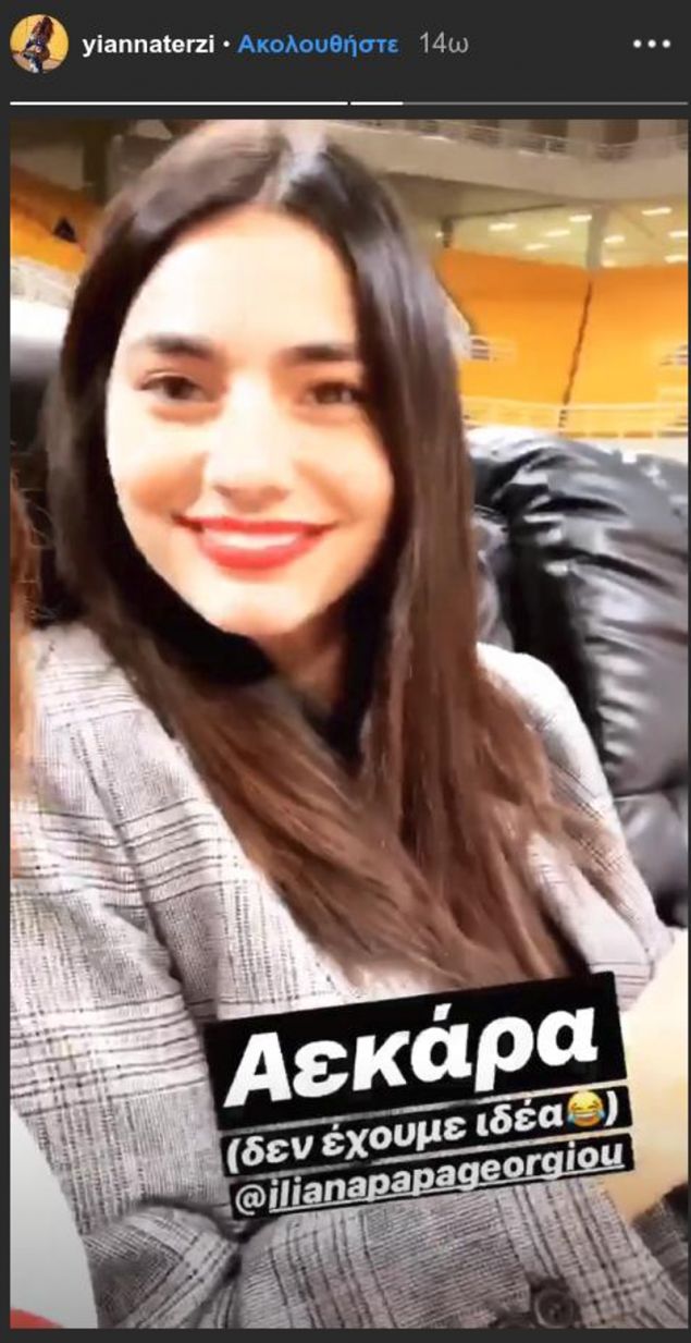 Οι δυο τους δεν παρέλειψαν να βγάλουν instastories από την προσπάθεια της ΑΕΚ, ενώ σε ένα από αυτά η Ηλιάνα Παπαγεωργίου δίνει φιλί στην μασκότ της ΑΕΚ, Panda Pandou. «Πάντα… παντού», έγραψε το μοντέλο κάνοντας mention τον λογαριασμό της ΑΕΚ.