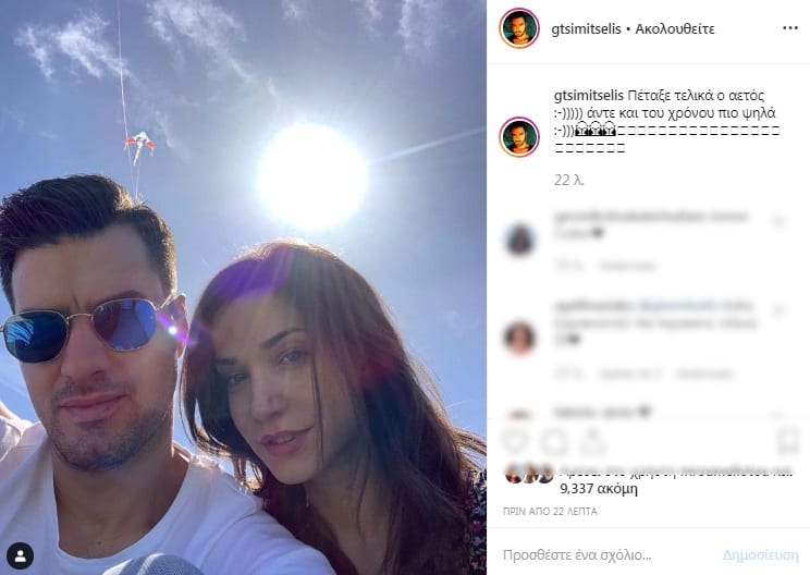 «Πέταξε τελικά ο αετός :-))))) άντε και του χρόνου πιο ψηλά :-)))???», έγραψε ο Γιάννης Τσιμιτσέλης ποζάροντας μαζί με την αγαπημένη του Κατερίνα Γερονικολού.