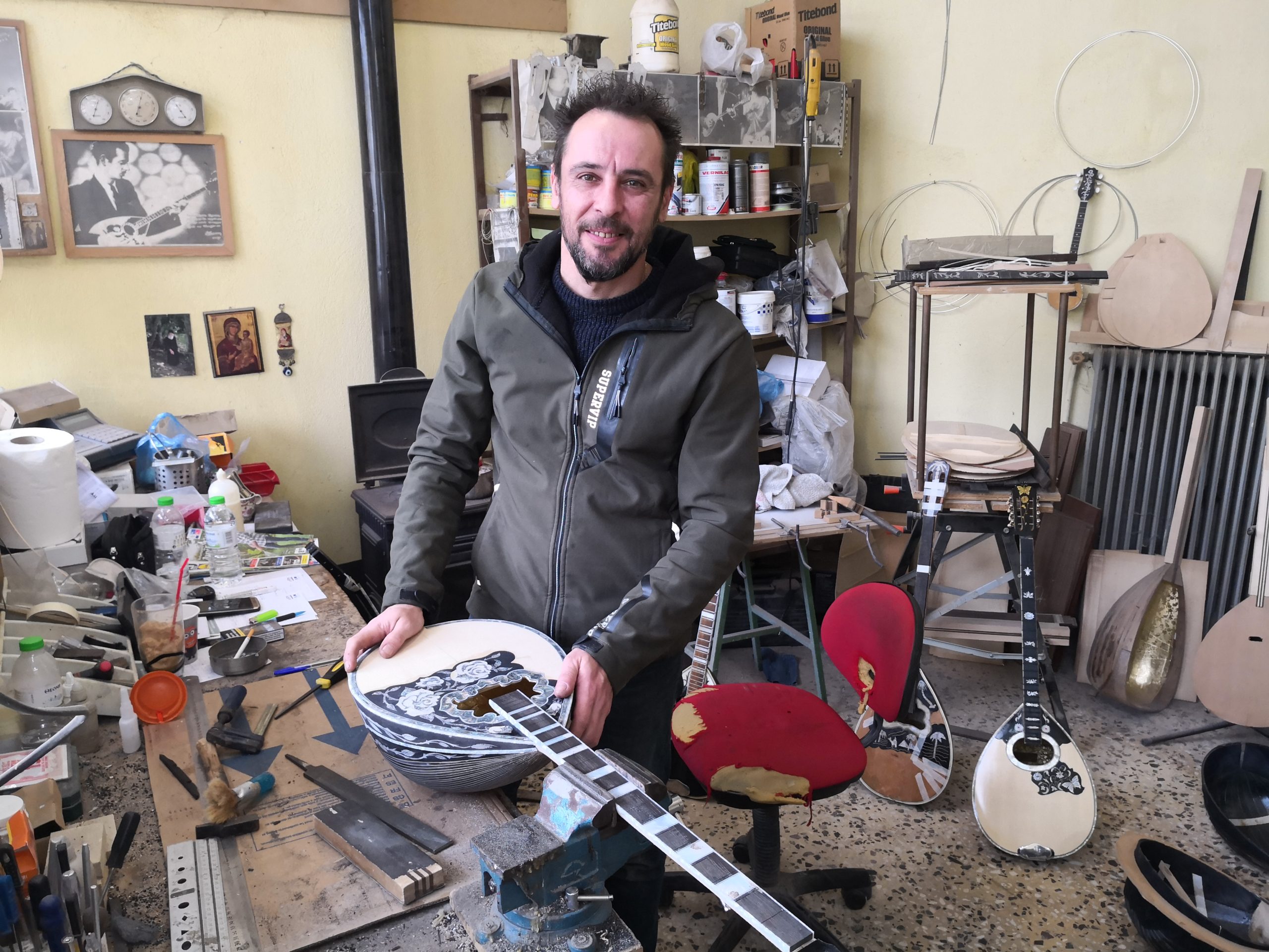 Ο Θοδωρής Γκόλιας, κατασκευαστής μουσικών οργάνων, διαφημίζει τη δουλειά του στο διαδίκτυο και στα μέσα κοινωνικής δικτύωσης