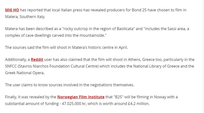 Η βρετανική σκανδαλοθηρική εφημερίδα αναφέρει ότι η κύρια βάση της νέας ταινίας «Βond 25» θα είναι η Τζαμάικα, ωστόσο πληροφορίες θέλουν να γίνονται γυρίσματα σε Ελλάδα και Ιταλία.