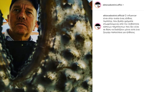 «O influencer είναι στην ουσία ένας ηλίθιος τεμπέλης, που βγάζει χρήματα επωφελούμενος από την ηλιθιότητα κάποιων πάμπλουτων που δεν είναι σε θέση να διαλέξουν μόνοι ούτε ένα ζευγάρι παπούτσια για ηλίθιους.», έγραψε χαρακτηριστικά στην λεζάντα που συνόδευε την ανάρτηση του.