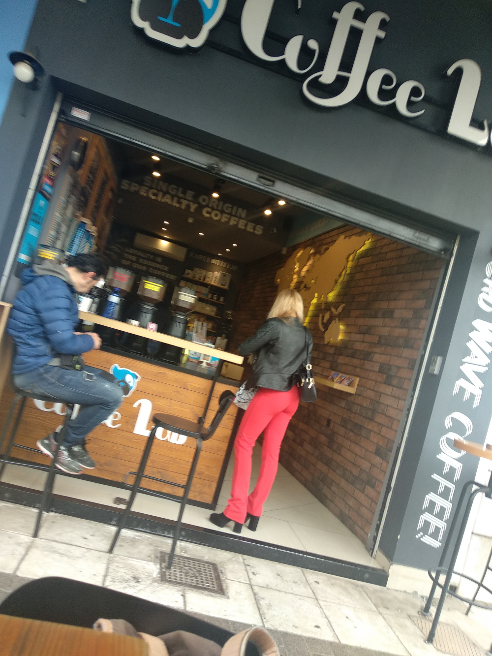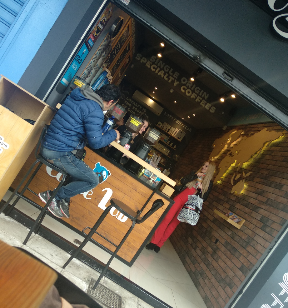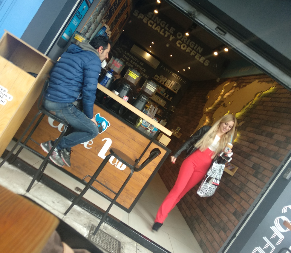 Ο φακός συνέλαβε την εντυπωσιακή ξανθιά παίκτρια του Power of Love να παραγγέλνει καφέ σε γνωστή αλυσίδα καφέ στην πλατεία Καλογήρων στη Δάφνη.