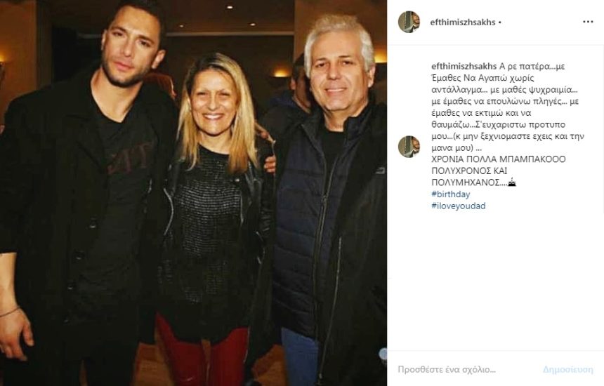 Στη λεζάντα που την συνόδευε, ο ίδιος θέλησε να ευχηθεί «χρόνια πολλά» στον πατέρα του που είχε γενέθλια.«Α ρε πατέρα. Με έμαθες να αγαπώ χωρίς αντάλλαγμα, με έμαθες με ψυχραιμία, με έμαθες να επουλώνω πληγές, με έμαθες να εκτιμώ και να θαυμάζω… Σ’ ευχαριστώ πρότυπό μου… (και μην ξεχνιόμαστε έχεις και την μάνα μου). ΧΡΟΝΙΑ ΠΟΛΛΑ ΜΠΑΜΠΑΚΟΟΟ ΠΟΛΥΧΡΟΝΟΣ ΚΑΙ ΠΟΛΥΜΗΧΑΝΟΣ… #birthday #iloveyoudad», έγραψε χαρακτηριστικά.