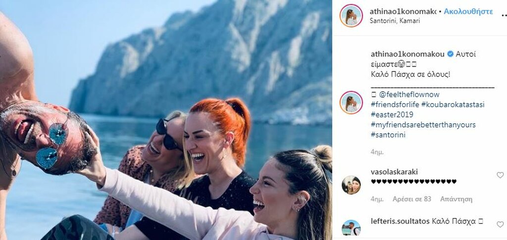 Η Αθηνά Οικονομάκου έκανε Πάσχα στο νέο ξενοδοχείο του αγαπημένου της Φίλιππου Μιχόπουλου στην Σαντορίνη, παρέα με τις υπόλοιπες κολλητές της παρέας, Νικόλ Παναγιώτου, Εύη Πρεβενά ενώ η Χριστίνα Κοντοβά ήταν στην Μύκονο.