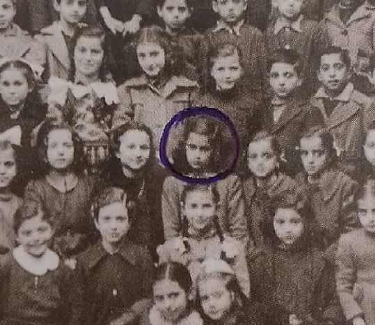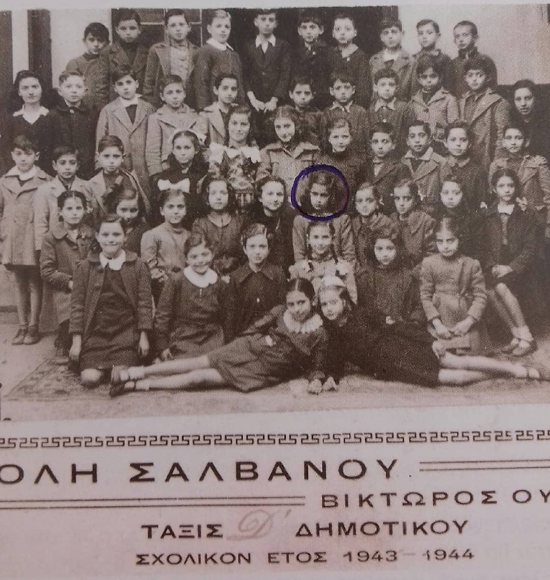 Η Αλίκη φαίνεται μέσα στο μπλε κύκλο και είναι λίγο μετά τον πόλεμο. Είναι η σχολική χρόναι 1943 – 1944 όπου η Αλίκη πάει στην 4η δημοτικού! Ο Άρης Λουπάσης γράφει: