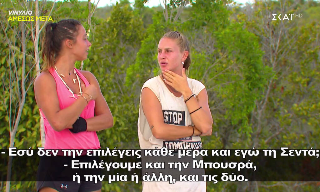 Οι δυο παίκτριες λογομάχησαν με αφορμή την ατάκα της Ρίας, η οποία δήλωσε ότι περιμένει να βρεθεί αντιμέτωπη με την Κατερίνα. Τότε, η Κατερίνα Δαλάκα της είπε ότι την επιλέγει η Δήμητρα πάντοτε, με τη Ρία να απορεί και την Κατερίνα να της λέει ότι παίζει με τη Σεντά αντίπαλο.