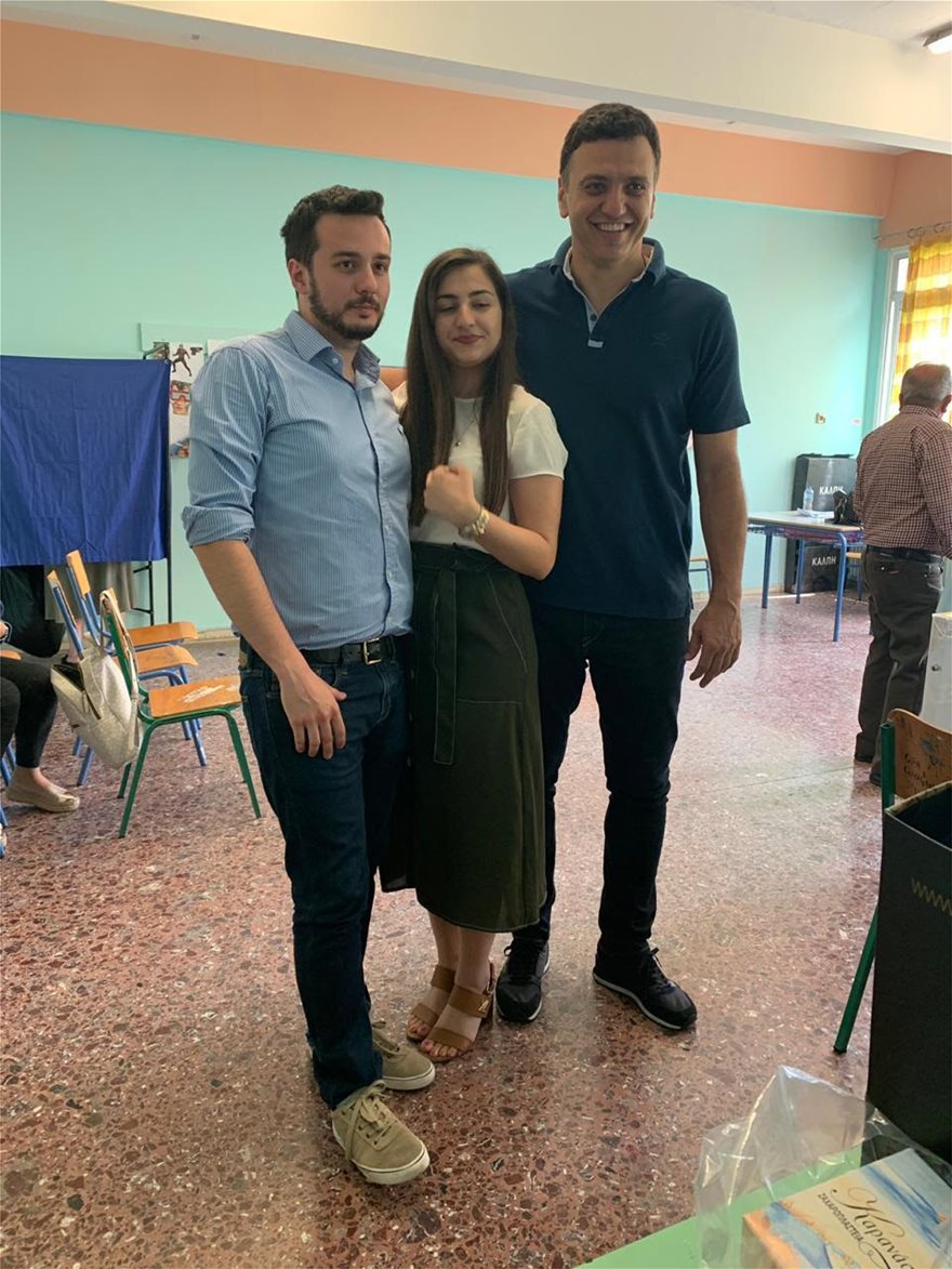 Ο βουλευτής της Α’ Αθήνας δεν αρνήθηκε να φωτογραφηθεί και με δυο νέα παιδιά, μέλη της εφορευτικής επιτροπής στο τμήμα που ψήφισε.