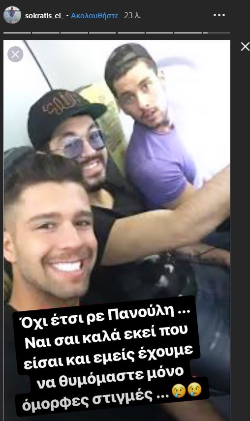 «Όχι έτσι ρε Πανούλη… Να σαι καλά εκεί που είσαι και εμείς έχουμε να θυμόμαστε μόνο τις όμορφες στιγμές», έγραψε ο Σωκράτης Ελ Γκαμαλί.
