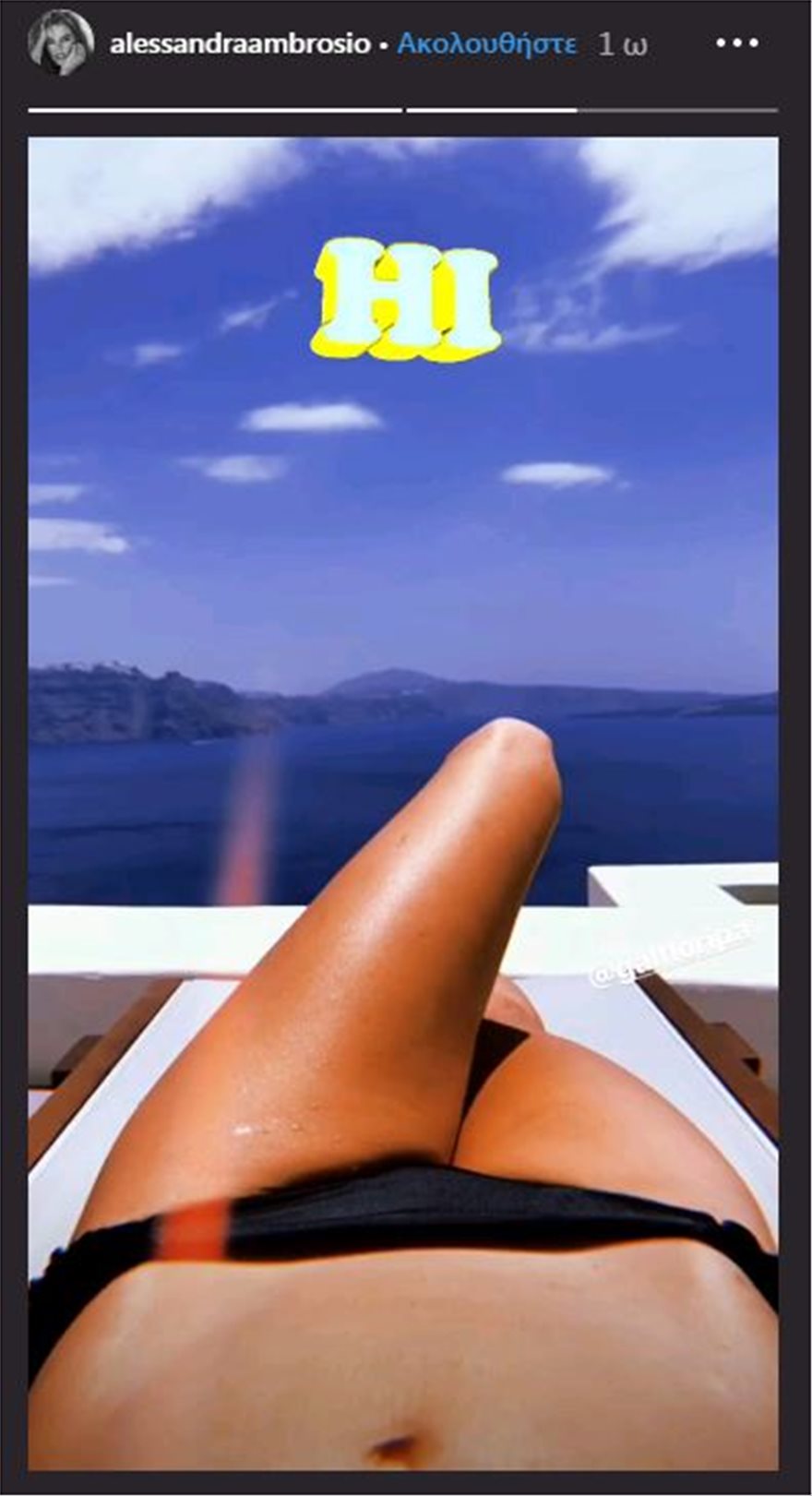 Ενθουσιασμένη φαίνεται πως είναι με την Σαντορίνη η Αλεσάντρα Αμπρόζιο.