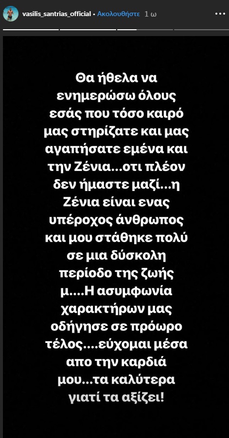 Bill Σαντριάς – Ζένια Σολδάτου: Ανακοίνωσαν τον χωρισμό τους μέσω των social media (φωτο)