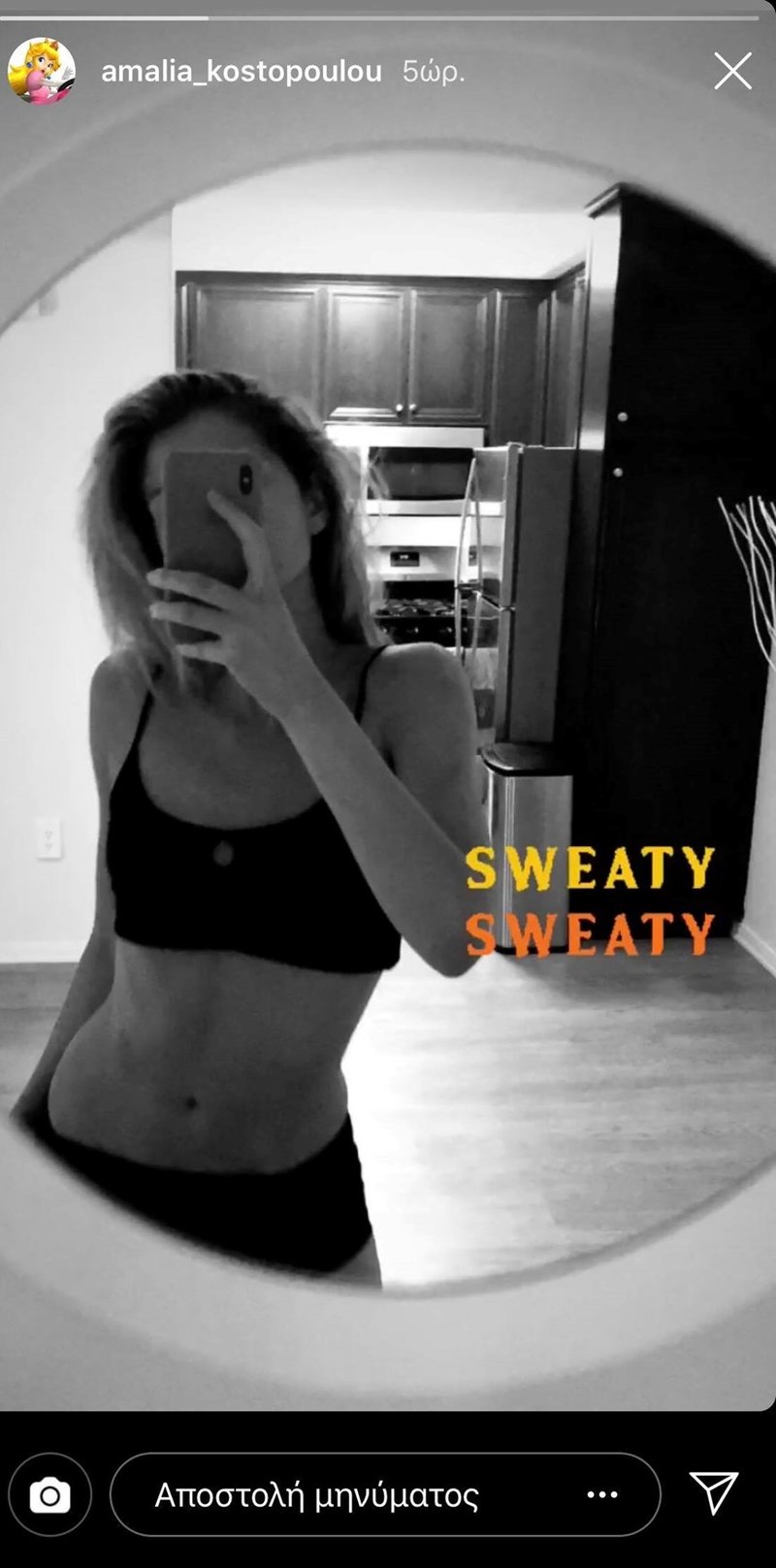 Μπορεί το πρόγραμμά της να είναι γεμάτο, δεν ξεχνά όμως ποτέ να αφιερώνει χρόνο στον εαυτό της και να κάνει γυμναστική για να διατηρείται σε φόρμα. Χθες το πρωί, η Αμαλία Κωστοπούλου μοιράστηκε με τους διαδικτυακούς της φίλους, μια φωτογραφία της, στην οποία ποζάρει με αθλητικά ρούχα και μας δείχνει τους καλογυμνασμένους κοιλιακούς της, ενώ γράφει ότι ίδρωσε πολύ.