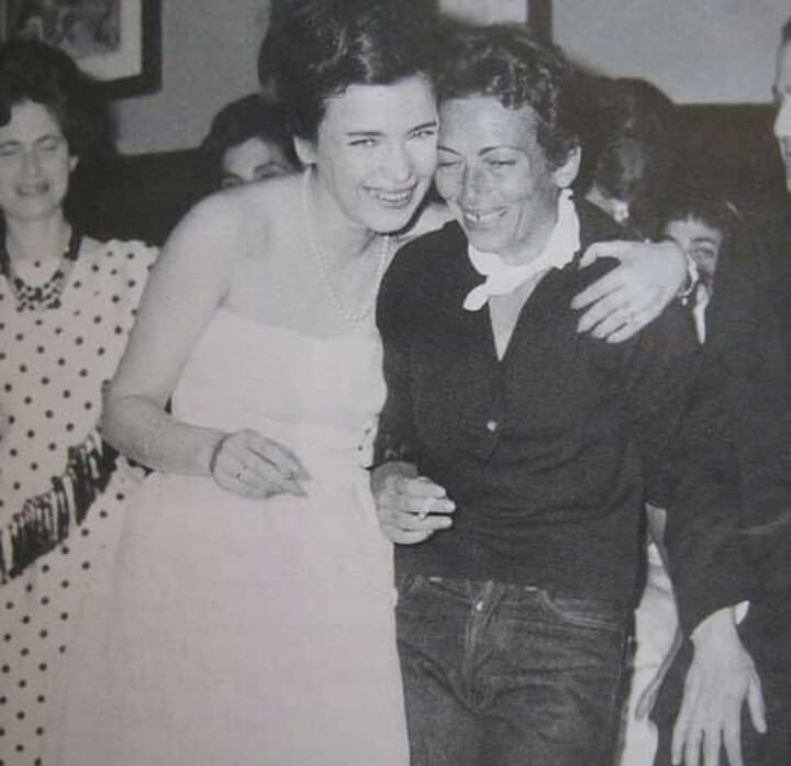 Και μπορεί τα φώτα της δημοσιότητας να έπεσαν στη νύφη και το γαμπρό, αλλά μεγάλο ενδιαφέρον είχε και η κουμπάρα του ζευγαριού, η πλοιοκτήτρια Μαρία Καλλιγά! Ο συλλέκτης Άρης Λουπάκης, δημοσίευσε μια σπάνια φωτογραφία από τη δεξίωση με την Τζένη Καρέζη να αγκαλιάζει την κουμπάρα της η οποία σε αντίθεση με όλους τους άλλους καλεσμένους της γαμήλια δεξίωσης φοράει ένα μαύρο πουκάμισο, ένα φουλάρι και ένα τζιν παντελόνι!