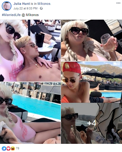 Η ίδια, τις τελευταίες εβδομάδες απολαμβάνει τις διακοπές της στην Ελλάδα -συγκεκριμένα στη Μύκονο- με ανδρική συντροφιά και μία ανάρτησή της να πυροδοτεί τις φήμες δεύτερου γάμου.
