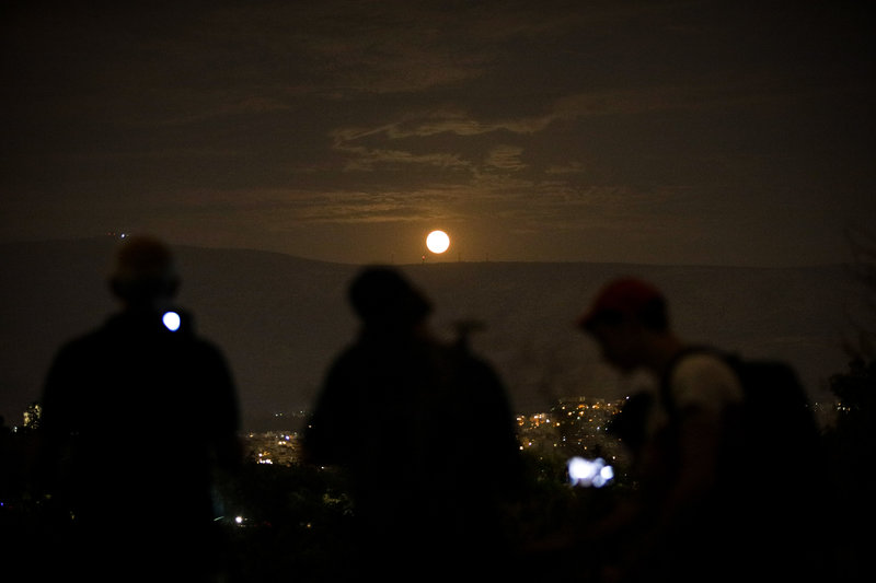 Δεκάδες επισκέπτες στο λόφο του Φιλοπάππου μαγεμένοι από την ανατολή της αυγουστιάτικης πανσελήνου (EUROKINISSI/ΓΙΑΝΝΗΣ ΠΑΝΑΓΟΠΟΥΛΟΣ)