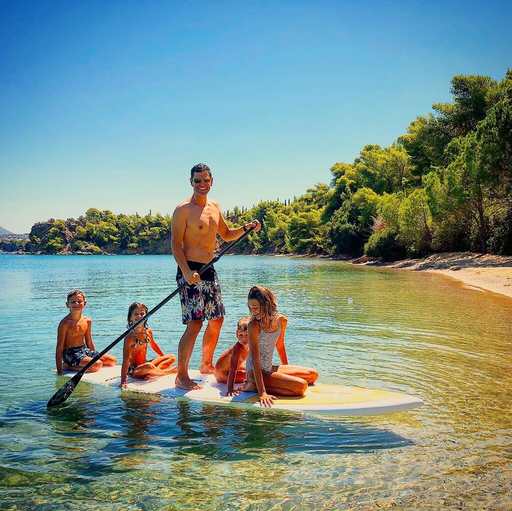 Στο caption έγραψε: Η μέρα ξεκίνησε με οικογενειακό board meeting?☀️#paddleboard #sup #paddling#familytime #happiness #floating#summervibes