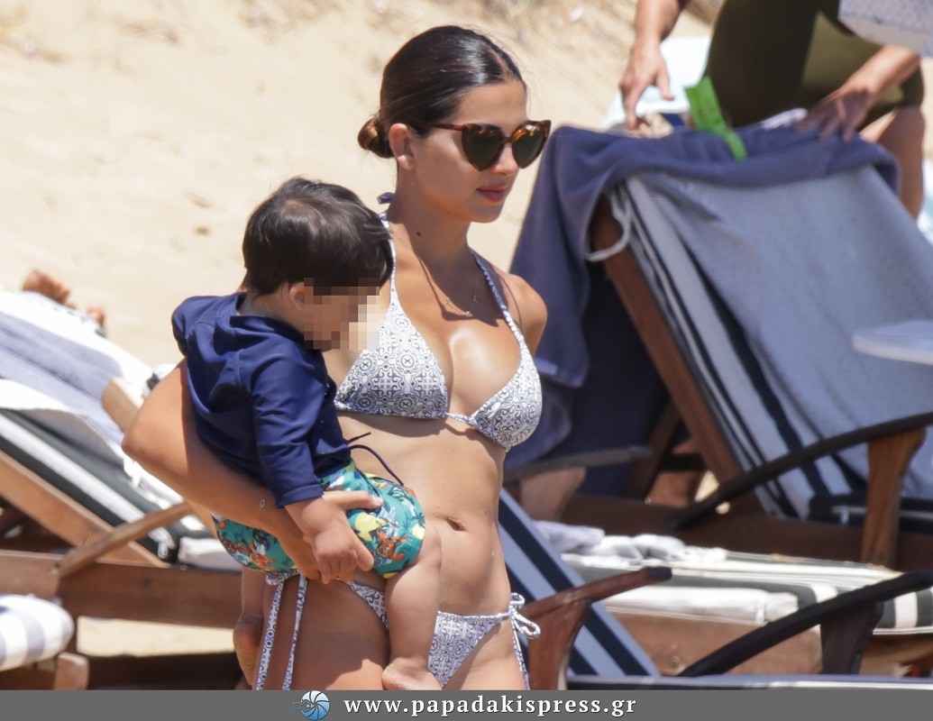 Ο φωτογραφικός φακός την απαθανάτισε να κάνει τις βουτιές της μαζί με τα παιδιά της, στα οποία φροντίζει να αφιερώνει όσο περισσότερο χρόνο μπορεί τώρα στις διακοπές.