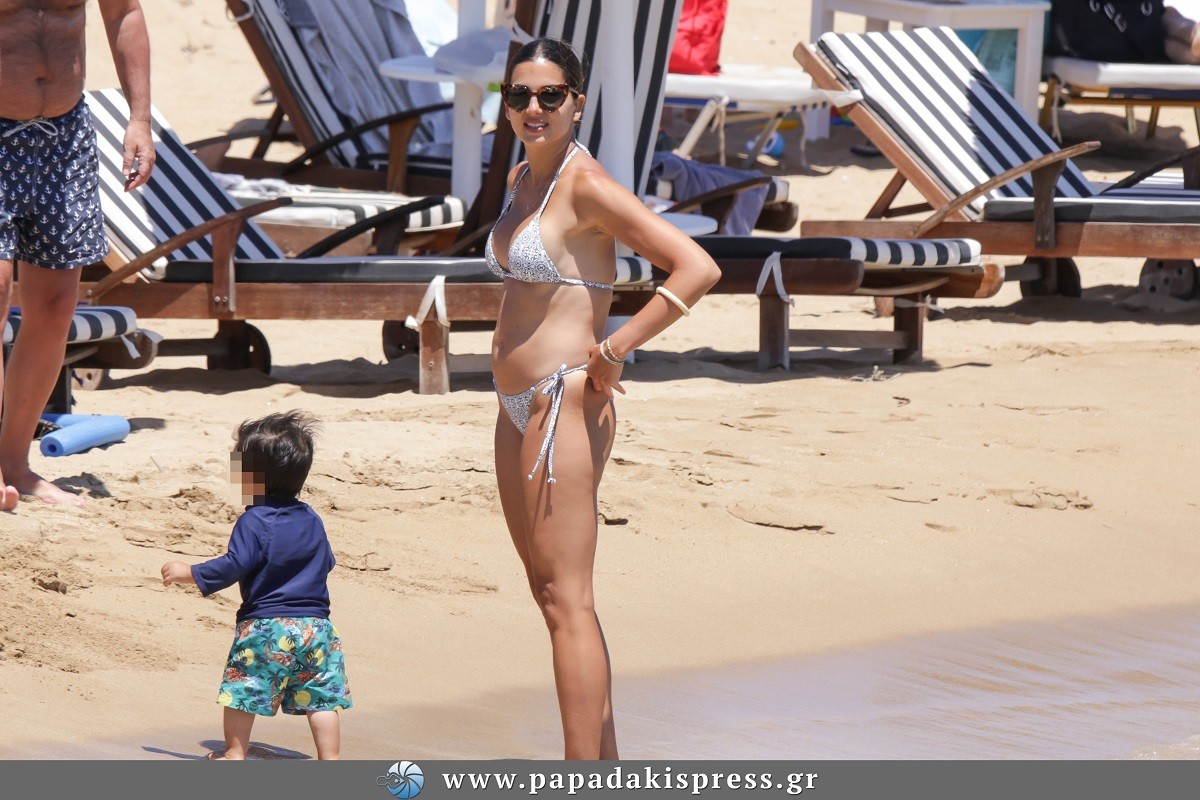 Ο φωτογραφικός φακός την απαθανάτισε να κάνει τις βουτιές της μαζί με τα παιδιά της, στα οποία φροντίζει να αφιερώνει όσο περισσότερο χρόνο μπορεί τώρα στις διακοπές. Η παρουσιάστρια επέλεξε ένα λευκό μπικίνι με γεωμετρικά σχέδια, που αναδείκνυε μοναδικά τη σιλουέτα της, ενώ είχε πιάσει τα μαλλιά της σε έναν κομψό χαμηλό κότσο με χωρίστρα στη μέση. Ολοκλήρωσε την εμφάνισή της με ένα ζευγάρι πραγματικά εντυπωσιακά γυαλιά ηλίου σε σχήμα cat eye, που προστάτευαν τα μάτια της από την ηλιακή ακτινοβολία, ενώ παράλληλα τής έδιναν πολλούς πόντους στυλ.