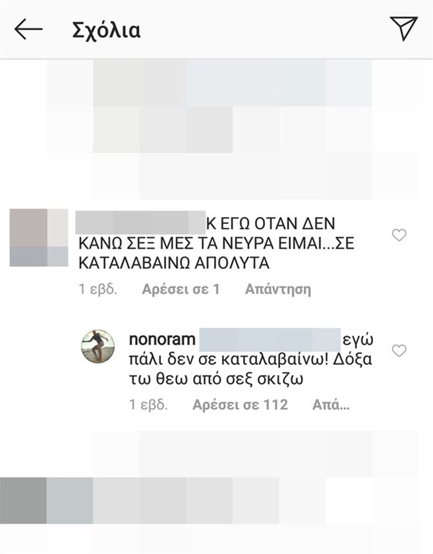 Ωστόσο, ένας από τους followers της έγραψε: «Και εγώ όταν δεν κάνω σeξ μες στα νεύρα είμαι… σε καταλαβαίνω απόλυτα…», με την Ελεονώρα να του και του απαντά και να τον αποστομώνει: «Εγώ πάλι δεν σε καταλαβαίνω! Δόξα τω Θεό από σeξ σκίζω».
