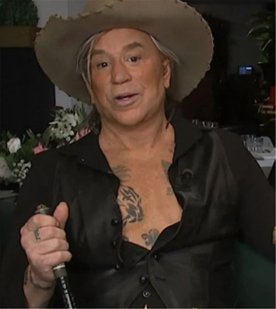 Η εικόνα του 66χρονου σταρ του Χόλιγουντ, με το καουμπόικο καπέλο και το ξεκούμπωτο μαύριο πουκάμισο είπε πολλά περισσότερα για τον ίδιο, από όσα ο ίδιος ο Μίκι Ρουρκ στην συγκεκριμένη συνέντευξη.