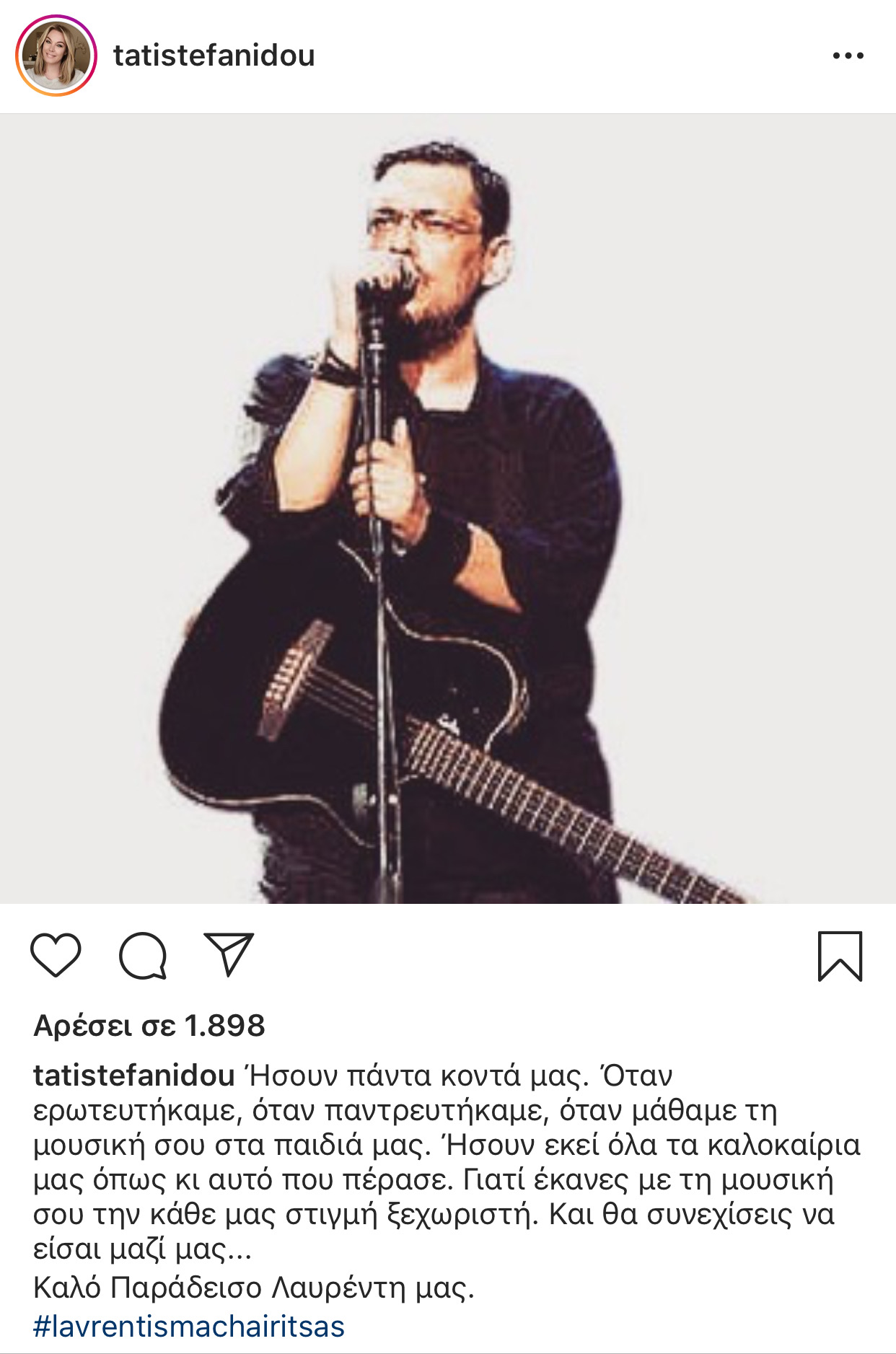 Η Τατιάνα Στεφανίδου μέσω του προσωπικού της λογαριασμού αποχαιρετά τον διάσημο τραγουδιστή Λαυρέντη Μαχαιρίτσα