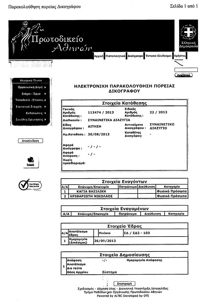 Η υπόθεση διαζυγίου του Νίκου Κριθαριώτη και της Βίκυς Καγιά εκδικάστηκε στις 26 Σεπτεμβρίου του 2013, παρουσία μόνο των δικηγόρων τους, οι οποίοι κατέθεσαν στο δικαστήριο τα απαιτούμενα χαρτιά, με την όλη διαδικασία να μη διαρκεί πάνω από πέντε λεπτά.