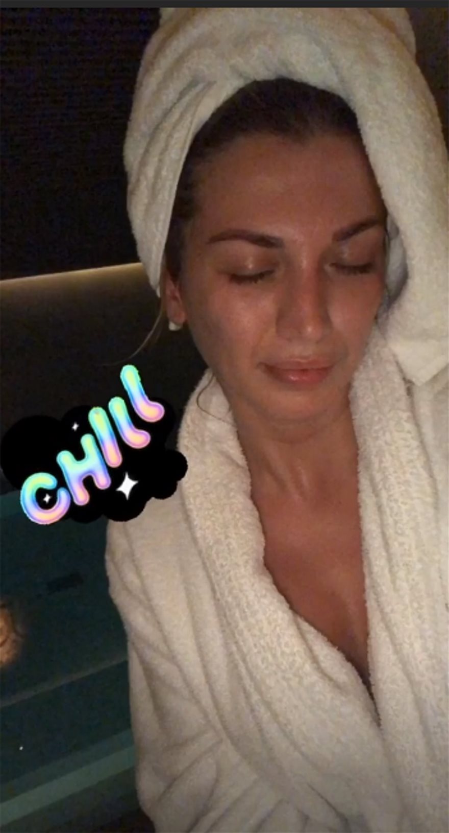 Πρόσφατα, η Κωνσταντίνα Σπυροπούλου δημοσίευσε στον προσωπικό της λογαριασμό στο Instagram μια φωτογραφία, στην οποία μας δείχνει μια άλλα πλευρά του εαυτού της. Ειδικότερα, η παρουσιάστρια ποζάρει φορώντας μόνο το μπουρνούζι της, χωρίς φίλτρα και make up και δείχνει νυσταγμένη.