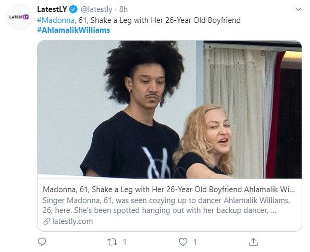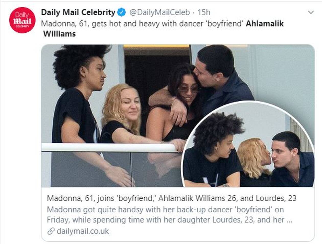 O χορευτής Ahlamalik Williams εθεάθη μαζί της σε θαλαμηγό στην οποίο επίσης βρισκόταν η κόρη της Madonna, Λούρδη, επίσης με το αγόρι της.