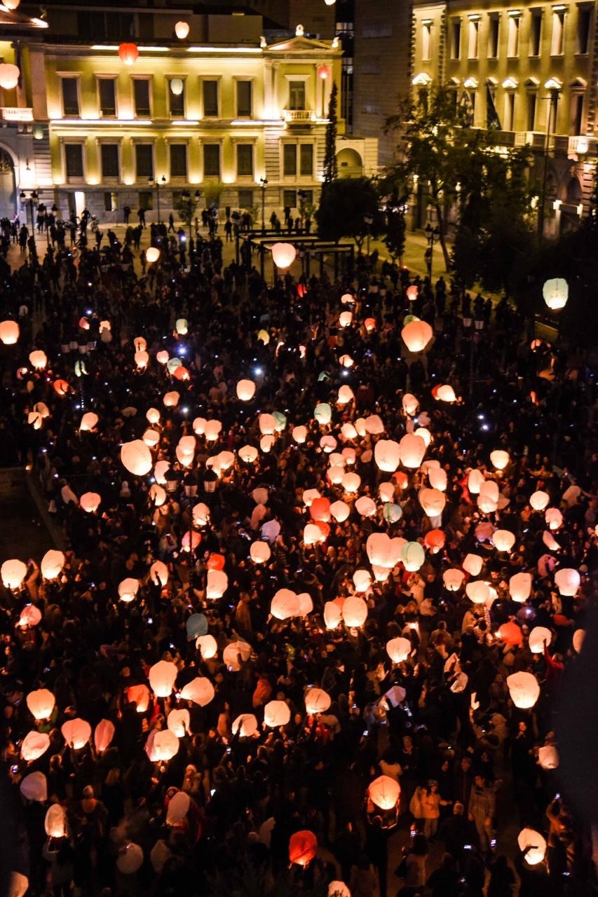 Μικροί και μεγάλοι, ανάμεσα τους και ο δήμαρχος Αθηναίων Κώστας Μπακογιάννης, πήραν χάρτινα φαναράκια και τα άφησαν να πετάξουν αναμμένα στον αθηναϊκό ουρανό μαζί με τις ευχές τους και την ελπίδα για ένα καλύτερο αύριο.