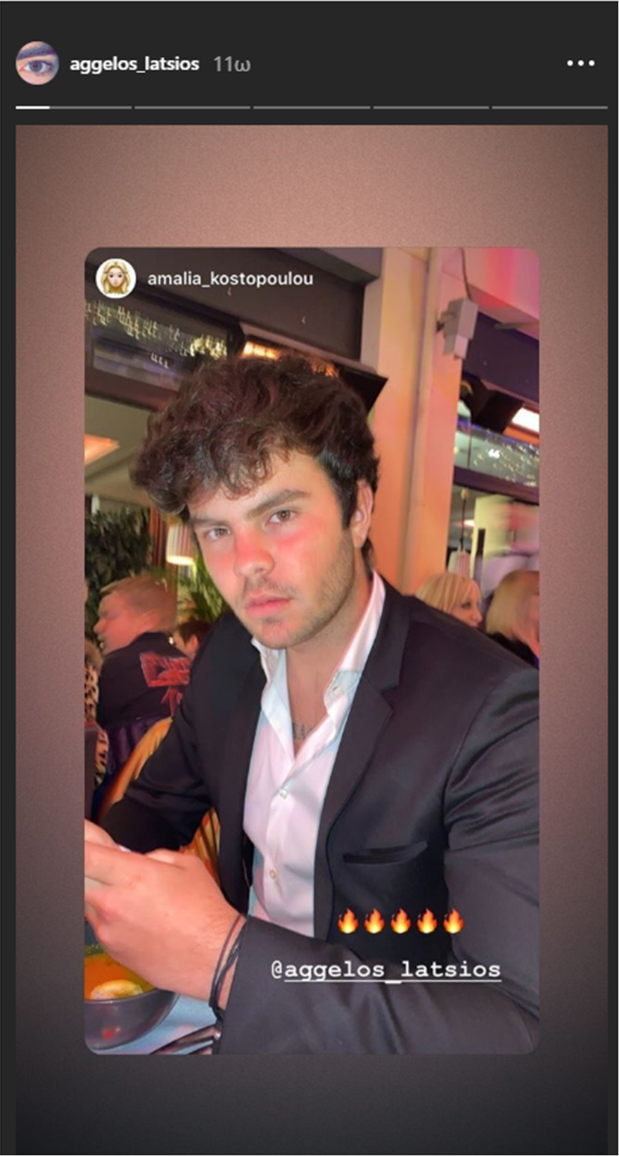 Παρέα με τους Αμαλία και Αλεξάνδρα Κωστοπούλου και Άγγελο Λάτσιο ήταν ακόμη ένα τέκνο γνωστού ζευγαριού, όπως φαίνεται από τα Instastories του Άγγελου Λάτσιου. Ο λόγος για τον Άρη Αργυρόπουλο, τον γιο της Μαρίας Μπακοδήμου και του Δημήτρη Αργυρόπουλου, που έδειξε να περνά υπέροχα.
