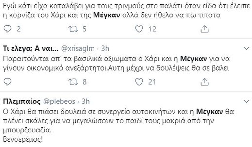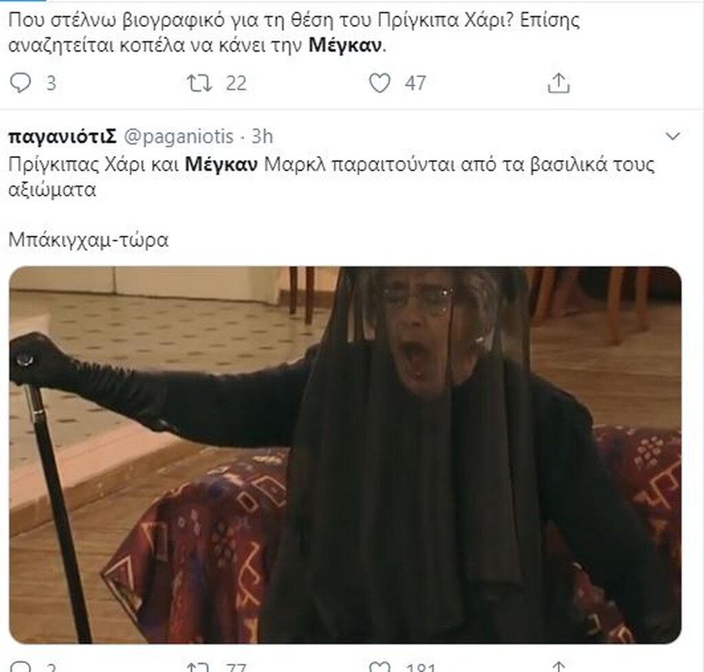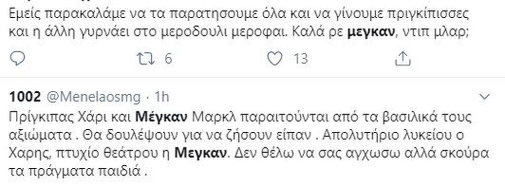 Και ενώ το Παλάτι δείχνει σαστισμένο από τις εξελίξεις και αναφέρει ξεκάθαρα στην ανακοίνωσή του πως καταλαβαίνει την επιθυμία των Sussexes αλλά υπάρχουν πολλά περίπλοκα ζητήματα που πρέπει να διευθετηθούν, το Twitter και το Instagram κάνει πάρτι με σχόλια χιουμοριστικά και μη.