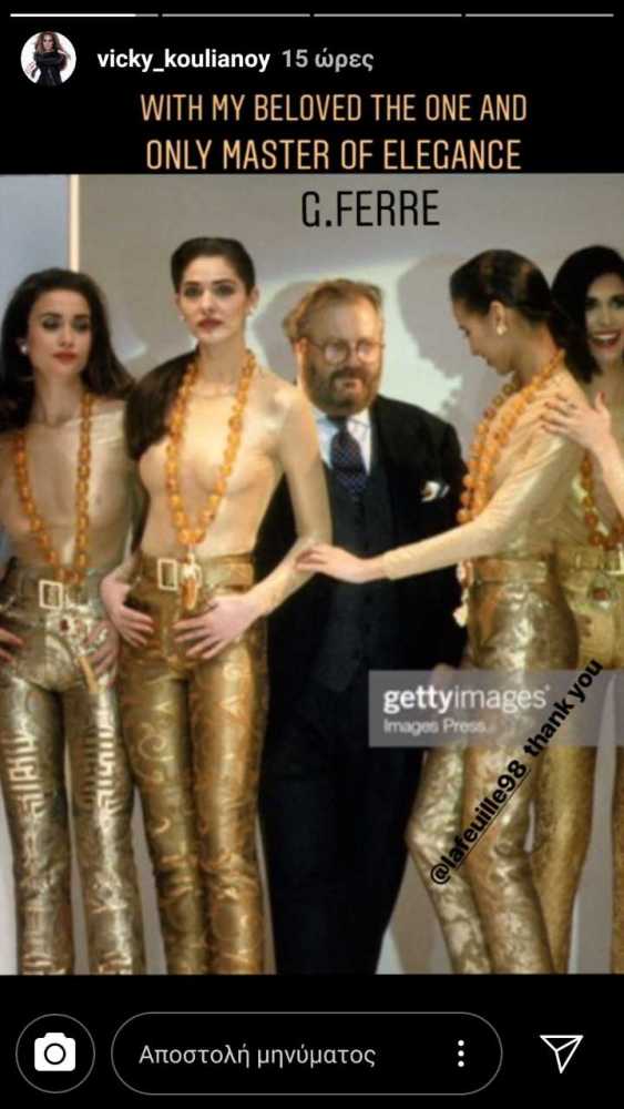 Η ίδια λοιπόν μέσα από το Insta story της μας γύρισε πίσω πολλά χρόνια σε μια από τις πασαρέλες του Φερέ δείχνοντας μας μοναδικά κομμάτια με κομψότητα και στυλ που μπορούν φορεθούν ακόμα και σήμερα. Μάλιστα στην ανάρτηση της έγραψε το εξής << Με τον μοναδικό και μάστερ της κομψότητας G.Ferre >>.