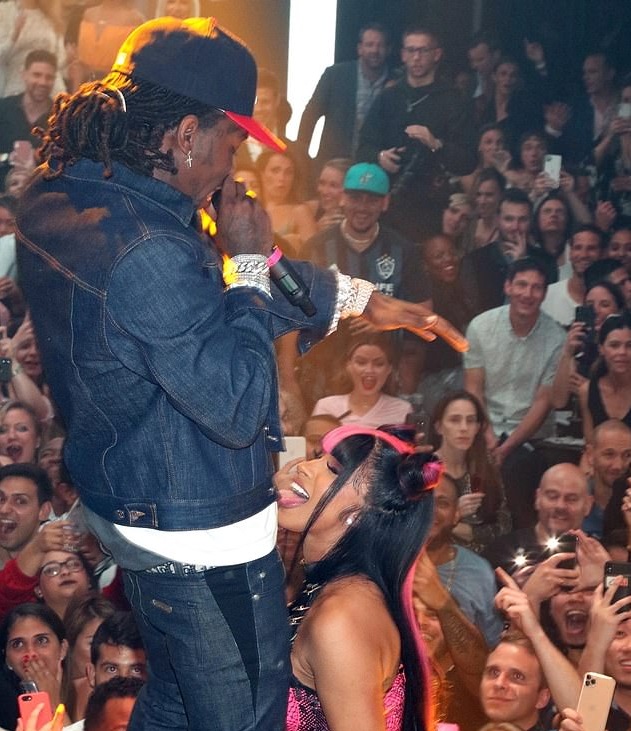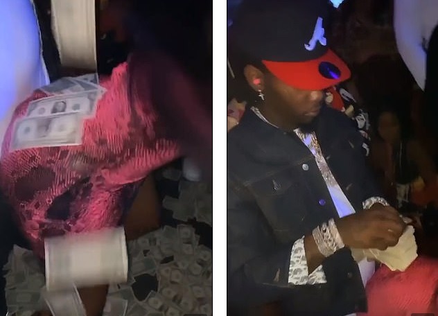 Το παντρεμένο ζευγάρι πάρταρε στο LIV Miami, με την Cardi B να σκύβει μπροστά στον σύζυγό της ενώ εκείνος την «έλουζε» με εκατοντάδες δολάρια σε χαρτονομίσματα.