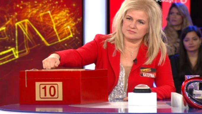 Στο φινάλε, η Κατερίνα είχε κρατήσει μέσα τα εξής ποσά: 20, 50 και 10.000 ευρώ. Ο τραπεζίτης της πρόσφερε 2.500 ευρώ, αλλά η παίκτρια αρνήθηκε. Στο επόμενο άνοιγμα κουτιού, οι 10.000 έκαναν… φτερά και η Κατερίνα έμεινε μόνο με 20 και 50 ευρώ.