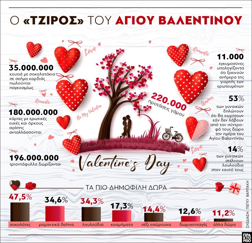 Άγιος Βαλεντίνος: Τα πιο δημοφιλή δώρα, ο «τζίρος» και οι εγκυμοσύνες που ξεκινούν εκείνη τη μέρα (φωτο)