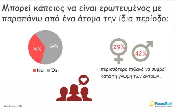 Στατιστικά στοιχεία για τον έρωτα και τις προεκτάσεις του επιχείρησε διαδικτυακή έρευνα που έγινε σε 980 άτομα άνω των 15 ετών.