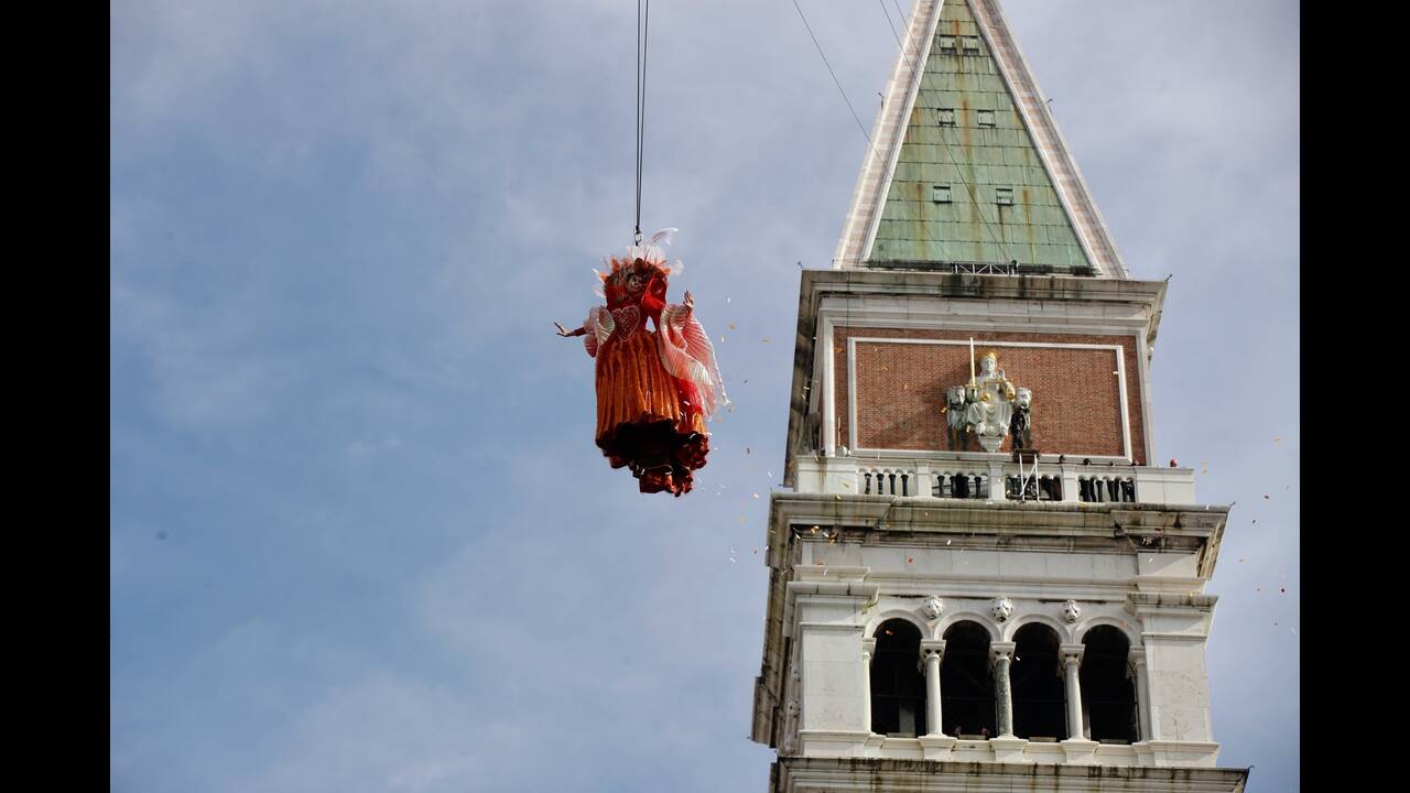 Χιλιάδες άνθρωποι, οι περισσότεροι ντυμένοι με κοστούμια εποχής, παρακολούθησαν σήμερα, στη διάσημη πλατεία του Αγίου Μάρκου, το παραδοσιακό «πέταγμα του Αγγέλου» στο πλαίσιο των εκδηλώσεων για το καρναβάλι της Βενετίας.