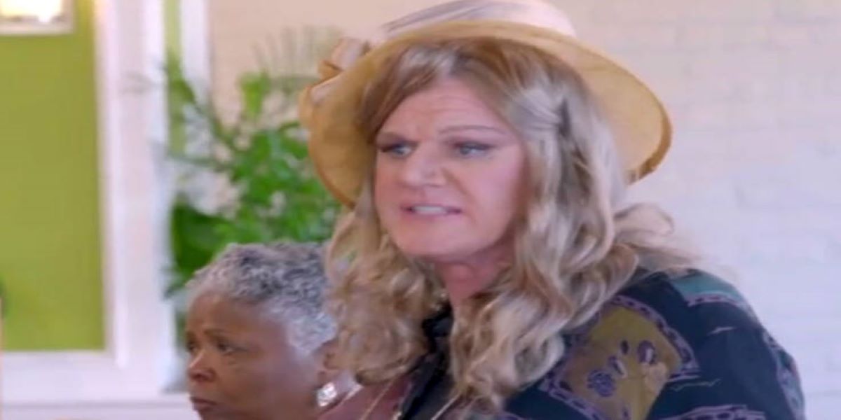 Ροζ κραγιόν, σκιά, περούκα με σγουρά μαλλιά και ο διάσημος σεφ γίνεται ένας με τους υπόλοιπους πελάτες, μέχρι τη στιγμή που αποκαλύπτει ποιος είναι.