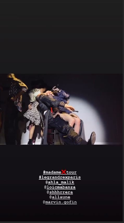 A friend who attended @Madonna Thursdays show told me that at the end of Vogue, she missed the chair and fell on the floor. A dancer had to help her on to the chair and then during the Polaroid part she broke in to tears and couldn’t stop. 😢 #madonna #madamex #MadameXTour
