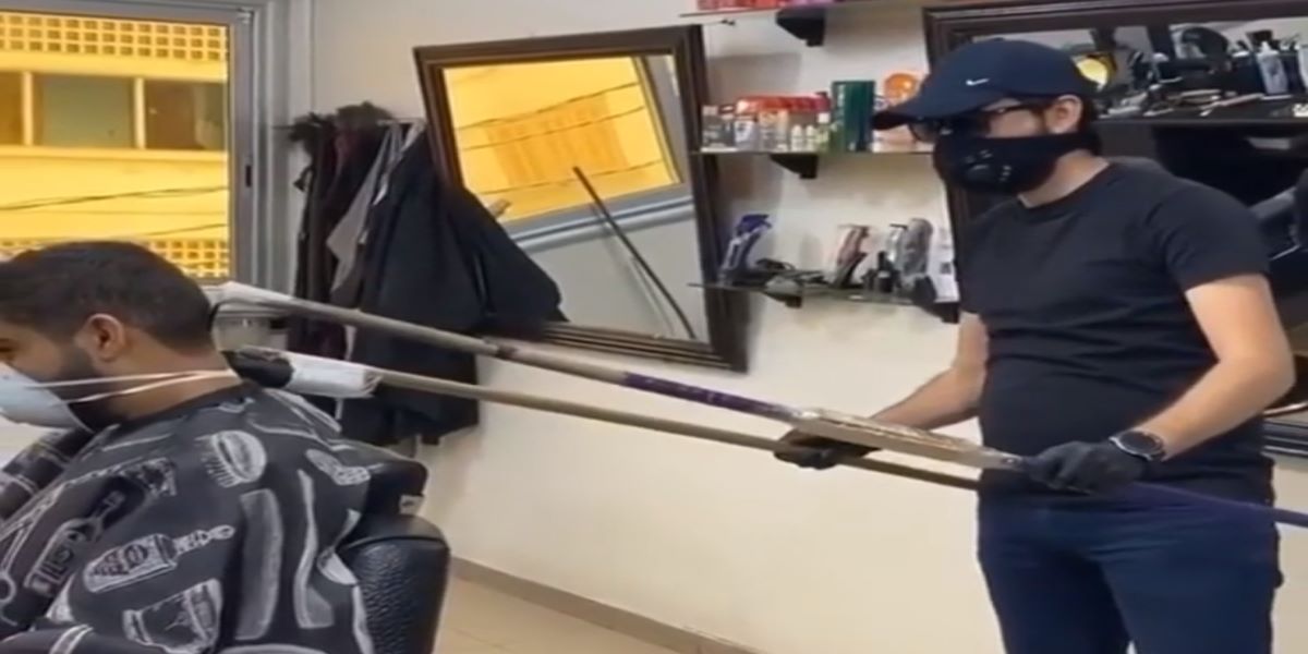 Οι κουρείς βάζουν τις μηχανές πάνω σε κοντάρια, και εξυπηρετούν τους πελάτες από απόσταση, φοβούμενοι πως θα κολλήσουν. Φυσικά φορούν και μάσκες.