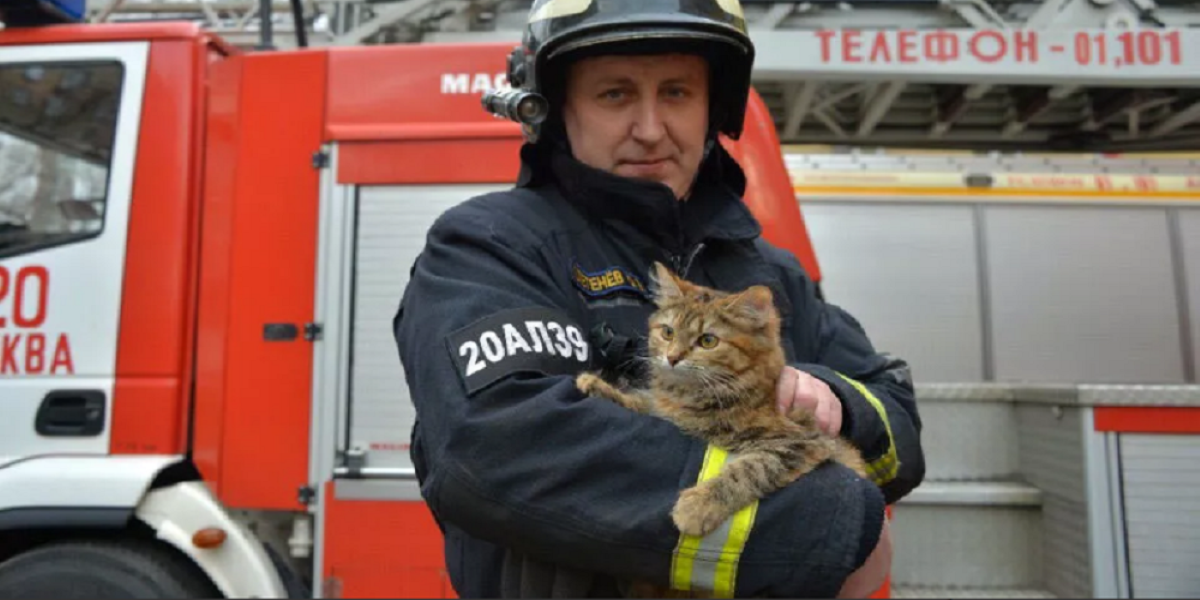 «Πέρσι σβήσαμε μια φωτιά σε διαμέρισμα. Στο κλιμακοστάσιο βρήκαμε ένα γατάκι με σημάδια δηλητηρίασης από τους καπνούς στην πυρκαγιά. Οι συνάδελφοι πήραν το γατάκι έξω από το σπίτι και του έβαλαν οξυγόνο. Αργότερα, αφού εξετάσαμε το γατί, προσέξαμε ότι μια πατούσα του ήταν σπασμένη και το πήγαμε στην κτηνιατρική κλινική, όπου νοσηλεύτηκε περίπου ένα μήνα», ανέφερε ο Εβγκένι Ρίτσεφ, επικεφαλής του πυροσβεστικού σταθμού Νουμ. 20, της πυροσβεστικής δύναμης της Μόσχας.