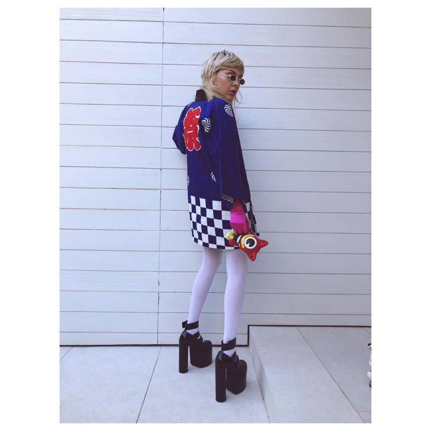 Φορώντας κιμονό, πανύψηλα παπούτσια και ροζ γάντια, φωτογραφίζεται σαν ένα άλλο Harajuku girl!