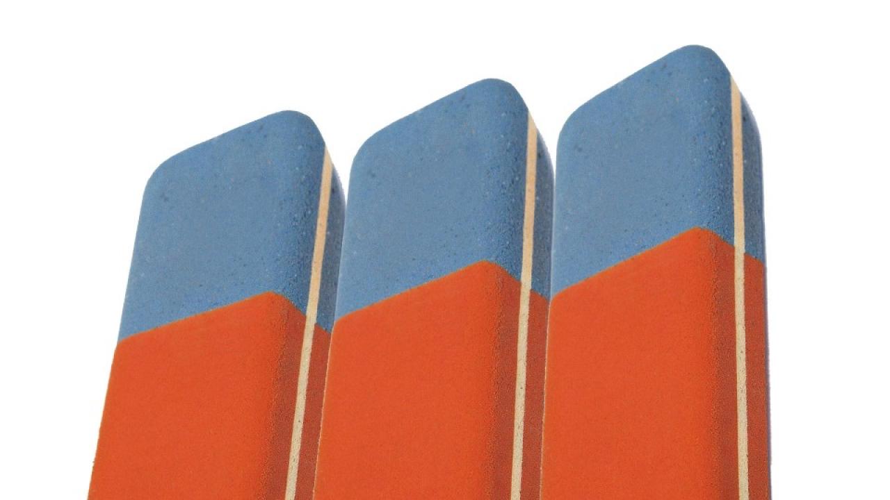 Πόσα φύλλα πετάξαμε επειδή από τη προσπάθεια σκίστηκε το φύλλο; Λογικό αν σκεφτείτε ότι η μπλε άκρη χρησιμεύει για να σβήνει σημάδια από μολύβι σε σκληρό, πορώδες χαρτί, τύπου μπλοκ ζωγραφικής.